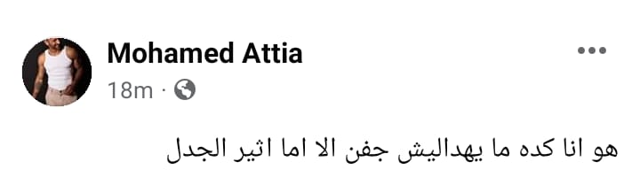 وخرج الفنان محمد عطية ساخرا من تلك الأنباء، فكتب عبر حسابه الرسمي بموقع التواصل الإجتماعي فيسبوك: “هو انا كده ما يهداليش جفن الا اما اثير الجدل”.