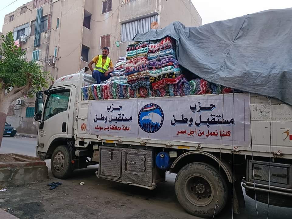 وفي محافظة بني سويف،بدأت أمانة الحزب بالمحافظة، في تنفيذ مبادرة "شتاء دافئ" لتوزيع البطاطين على الأسر الأولى بالرعاية في مختلف مراكز المحافظة، والتي تستهدف توزيع البطاطين على الأسر الأولى بالرعاية والاكثر احتياجًا.