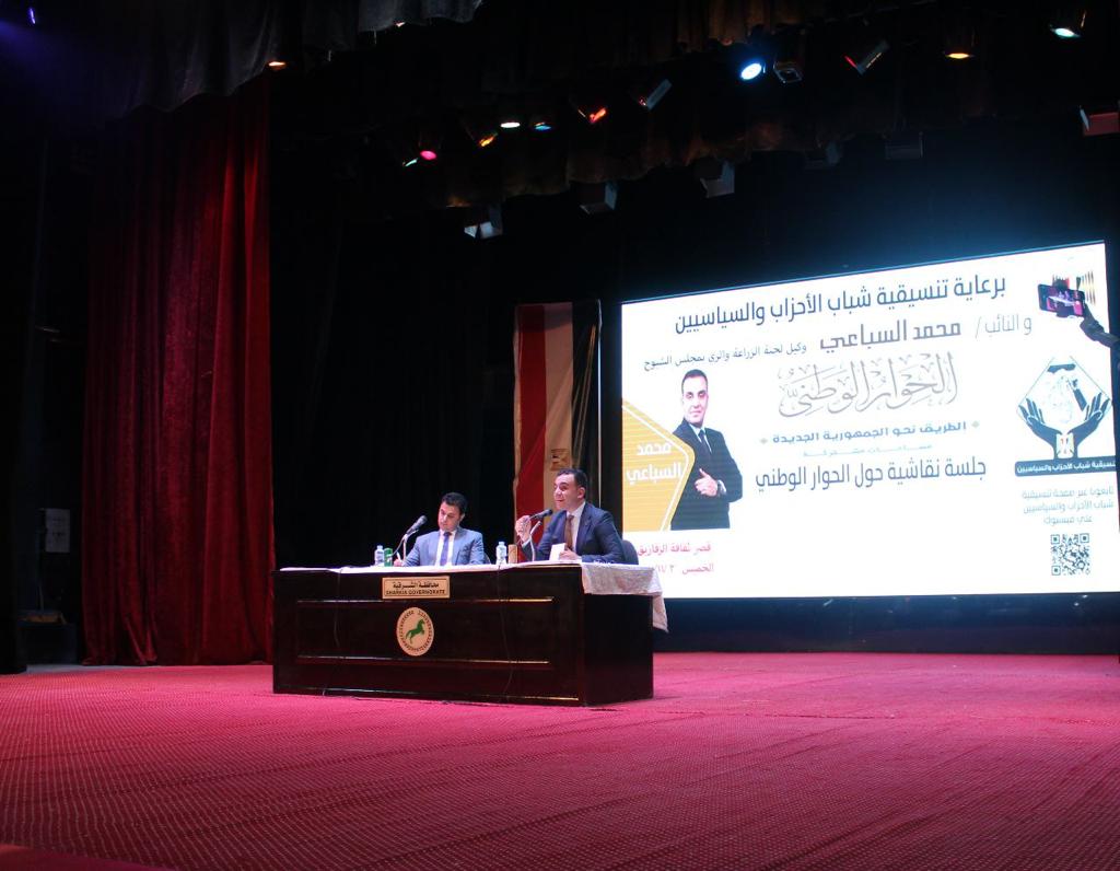 عقد النائب محمد السباعى، عضو مجلس الشيوخ عن تنسيقية شباب الأحزاب والسياسيين، ووكيل لجنة الزراعة والري والموارد المائية، جلسة نقاشية بقصر ثقافة الزقازيق بحضور أطياف واسعة من شباب الجامعات والنقابات والاتحادات الطلابية ونموذج محاكاة برلمان الشباب ومجلس الشيوخ.