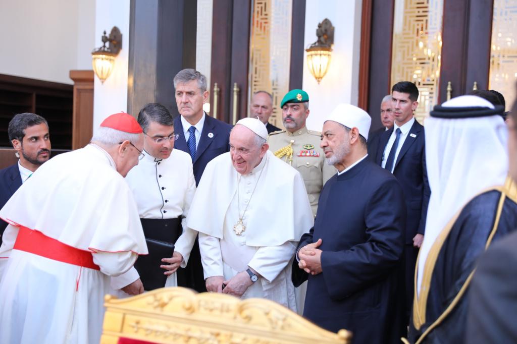 بدأ منذ قليل فعاليات اجتماع حوار مجلس حكماء المسلمين وكبار رجال الكنيسة الكاثوليكية، تحت عنوان «الحوار بين الأديان وتحدِّيات القرن الواحد والعشرين»، بقصر الصخير الملكي بالعاصمة البحرينية المنامة، بحضور فضيلة الإمام الأكبر الدكتور أحمد الطيب شيخ الأزهر الشريف، رئيس مجلس حكماء المسلمين، وقداسة البابا فرنسيس، بابا الكنيسة الكاثوليكية.