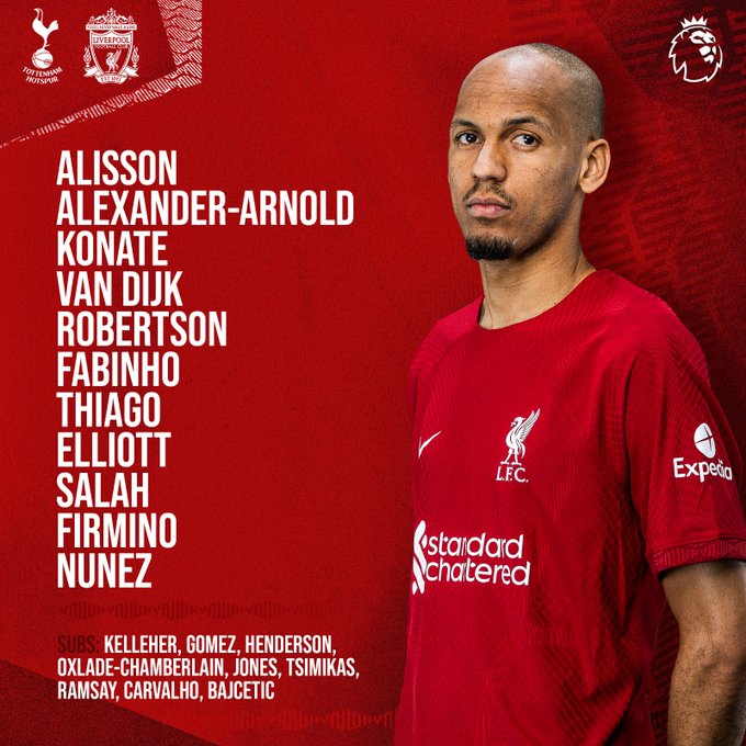 وجاء تشكيل ليفربول لمواجهة توتنهام كالتالي:-