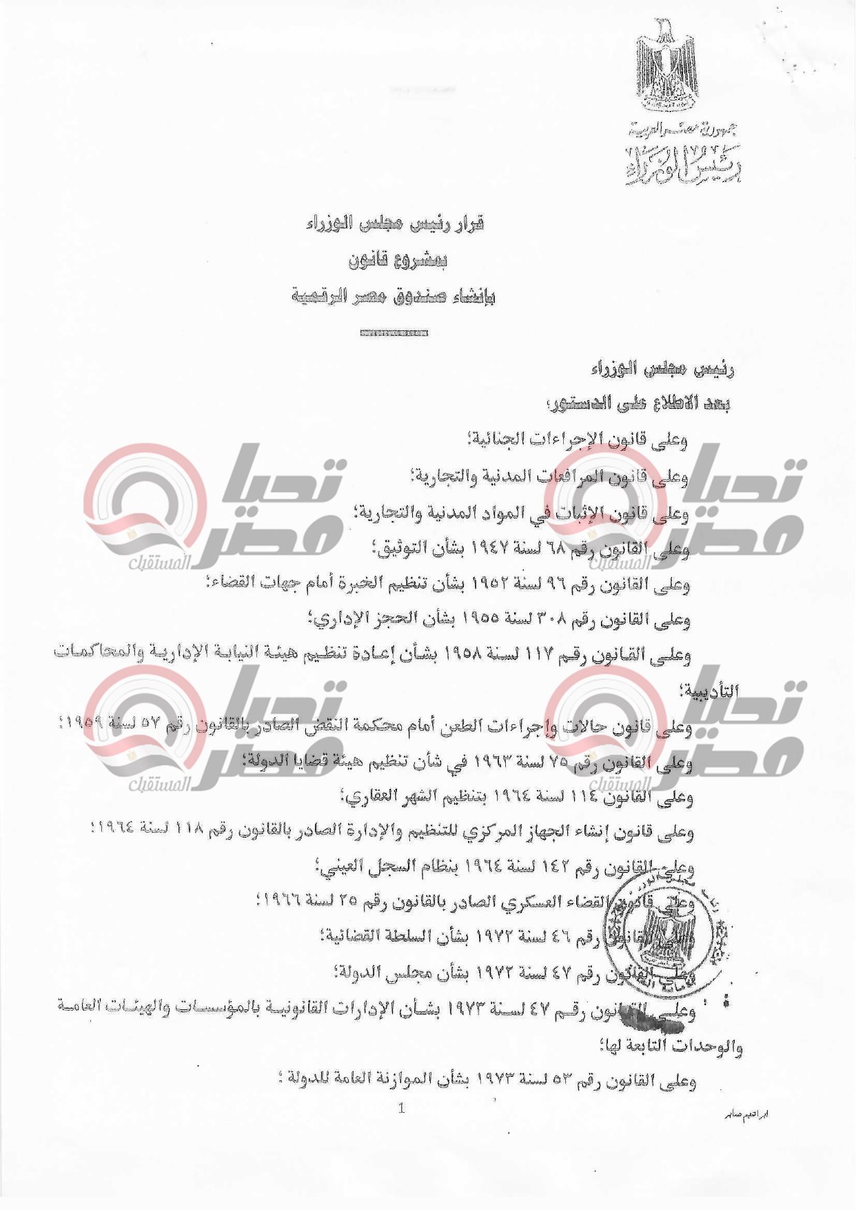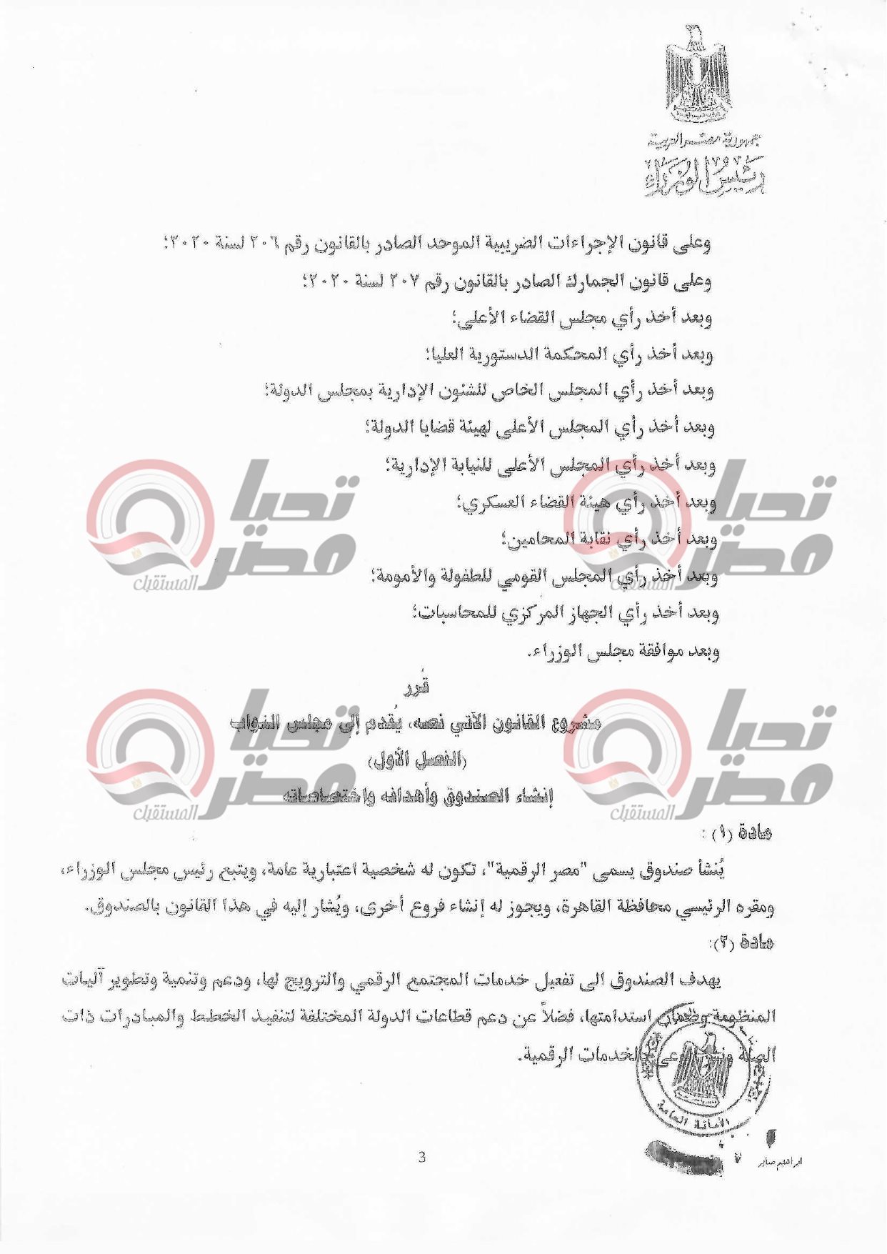 خاص تحيا مصر: نص مشروع قانون مصر الرقمية المعروض على مجلس الشيوخ غدا