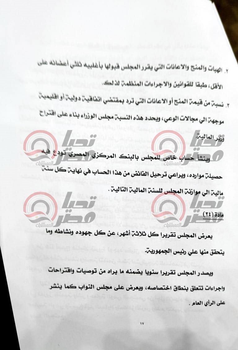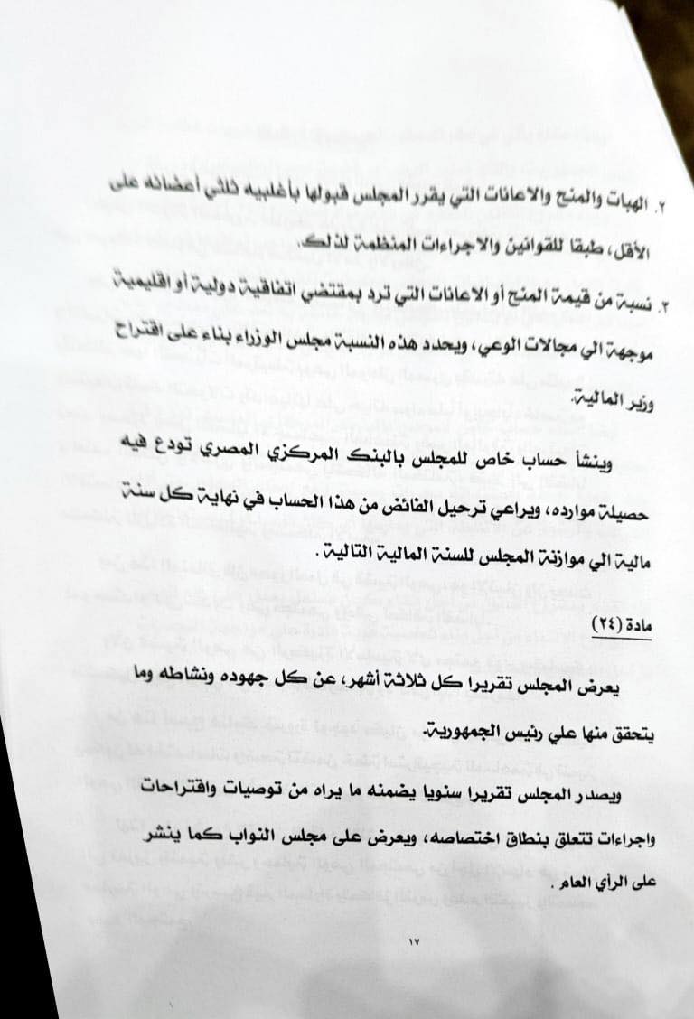وأشار رضوان، إنه فى مناقشات سابقة، أكدنا على وجود توافق على المشروع ولكن هناك تعديلات لابد منها ، خاصة أن هناك نقاط تماس مع مجالس قومية أخرى، كما شدد، رشوان على اهمية عقد جلسات استماع مطولة ومفصلة لمناقشة هذا المشروع واعطاء فرصة اكبر للجان النوعية لمناقشة اكبر واوسع، فيما أشادت النائبة جيهان البيومي بمشروع القانون خاصة أن قضية بناء الوعى، هى قضية أمن قومى .