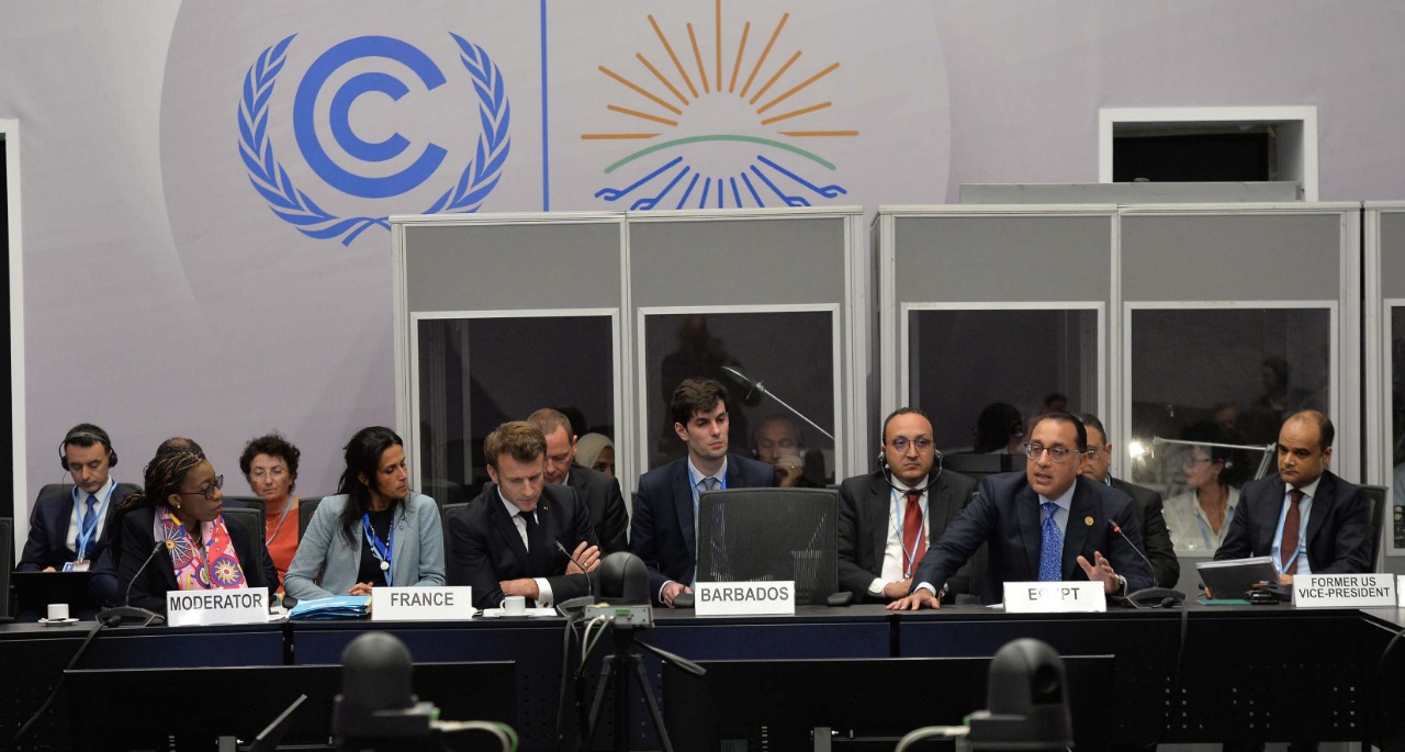 شارك الدكتور مصطفى مدبولي، رئيس مجلس الوزراء، فى اجتماع المائدة المستديرة للتمويل المبتكر للمناخ والتنمية، التي انعقدت برئاسة إيمانويل ماكرون، رئيس فرنسا، و"ميا موتلي"، رئيسة وزراء باربادوس، وبحضور آل جور، نائب الرئيس الأمريكى الأسبق، والدكتورة ياسمين فؤاد، وزيرة البيئة، والدكتورة رانيا المشاط، وزيرة التعاون الدولى، وجون كيرى، المبعوث الرئاسي الأمريكي الخاص لشئون المناخ، وكريستالينا جورجييفا، مدير عام صندوق النقد الدولى، وذلك خلال فعاليات قمة المناخ COP27 في مدينة شرم الشيخ.