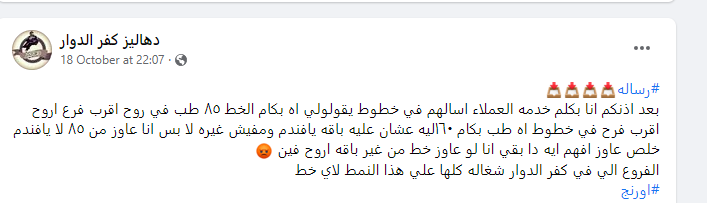 وقال أحد المواطنين عبر صفحته على موقع "فيسبوك"،: "بعد أذنكم أنا بكلم خدمة العملاء أسالهم في خطوط يقولولي اه بكام الخط ٨٥ طب في روح أقرب فرع".