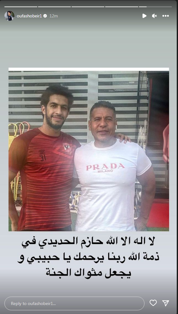 وحرص عدد من اللاعبي على نعي وفاة حازم الحديدي، عبر حساباتهم على مواقع التواصل الإجتماعي، على رأسهم رمضان صبحي ومحمد ناجي جدو.