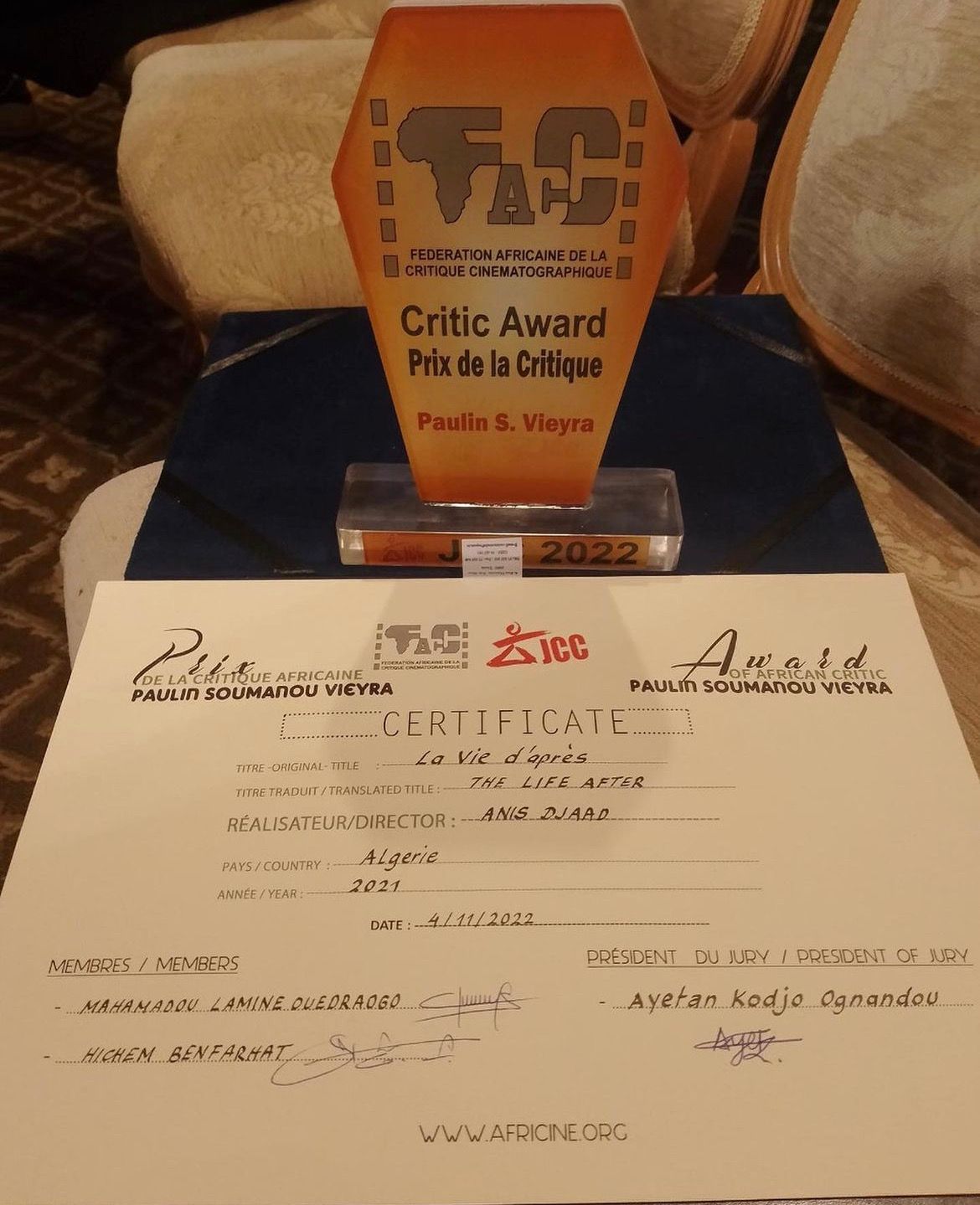 ونال الفيلم جائزة العمل الاول الطاهر شريعة وجائزة تي في 5 موند، إلى جانب جائزة الجامعة الإفريقية للنقد التي تمنحها الفيدرالية الإفريقية للنقد السينمائي ضمن الجوائز الموازية للمهرجان.