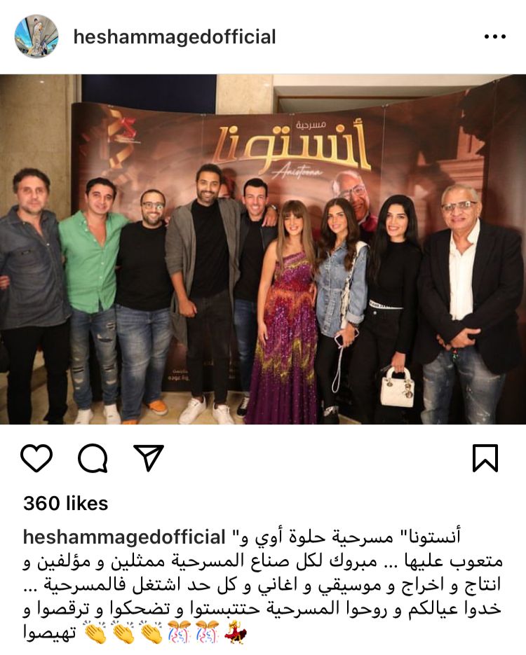 ونشر هشام ماجد صورة تجمعه بفريق عمل المسرحية عبر حسابه بانستجرام، وعلق: أنستونا" مسرحية حلوة أوي و متعوب عليها.