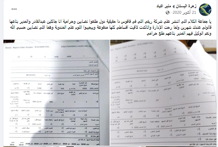 وقال إحدى رواد مواقع التواصل الاجتماعي "فيسبوك"، "يا جماعة الكلام اللي اتنشر علي شركة ريفي اللي في فاقوس دا حقيقية دول طلعوا نصابين وحرامية انا جاكلين عبدالقادر".