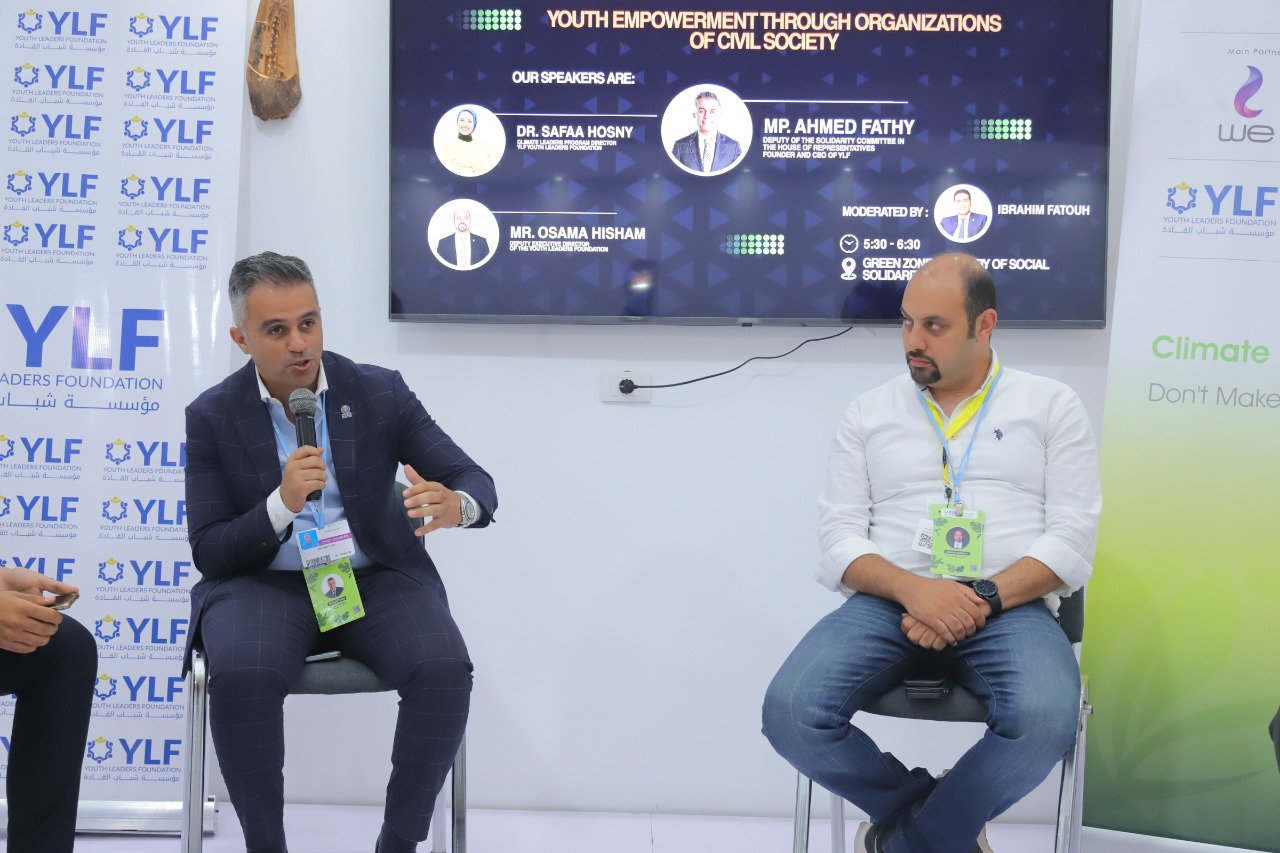 عقدت مؤسسة شباب القادة جلسة حوارية، في الجناح الخاص بوزارة التضامن الإجتماعي، لمناقشة دور المؤسسة في دعم الشباب و افكارهم لمواجهة تحديات تغير المناخ، علي هامش فعاليات مؤتمر المناخ COP27 بمدينة شرم الشيخ.