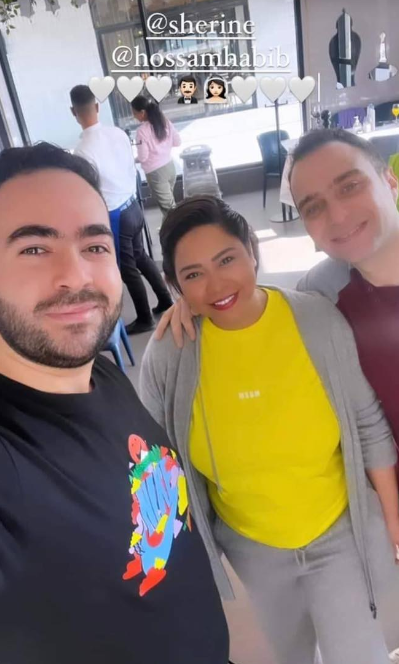 كانت شيرين عبد الوهاب مرتدية ترينج رياضي باللون الرصاصي وعليه تيشيرت باللون الأصفر، بجانبها حسام حبيب وضعا يده على كتفها، وتم التقاط الصور لهم في إحدى المطعام.