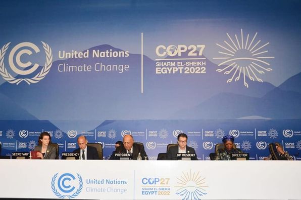 ترأس السيد سامح شكري وزير الخارجية رئيس الدورة ٢٧ لمؤتمر أطراف اتفاقية الأمم المتحدة الإطارية لتغير المناخ COP27، اليوم الإثنين ١٤ نوفمبر الجاري، جلسة إحاطة خاصة للجلسة العامة للمؤتمر، تم خلالها استعراض سير العملية التفاوضية حول مختلف البنود المطروحة على أجندة مؤتمر COP27 منذ بداية المفاوضات وحتى اليوم.