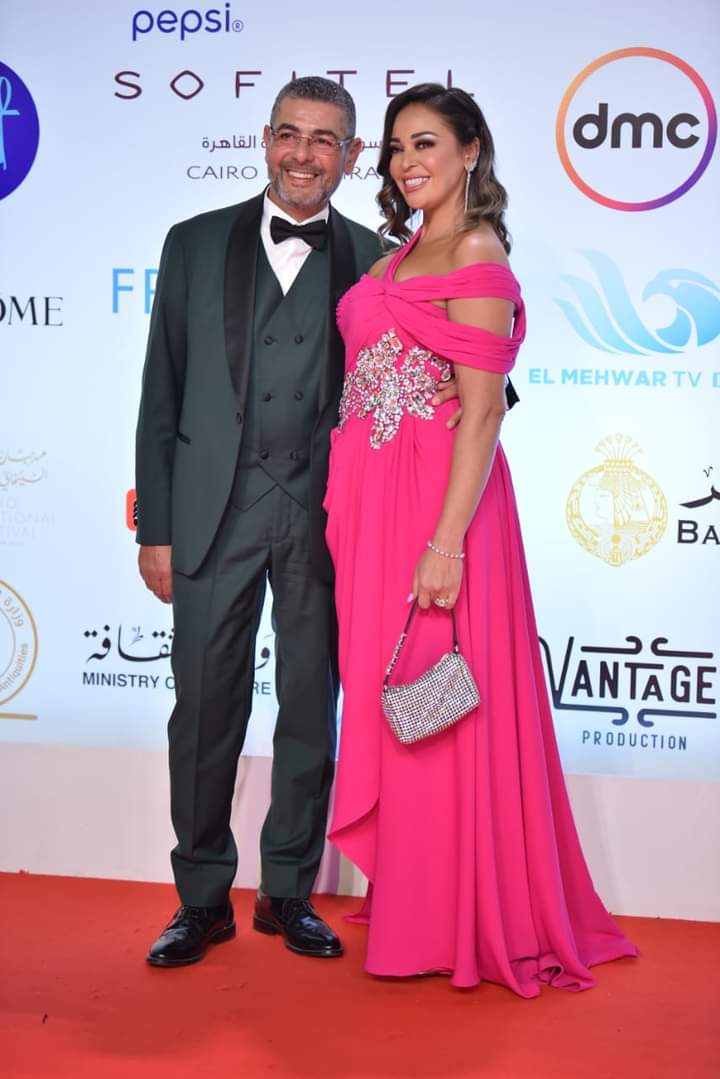 كما ظهرت الفنان داليا البحيري على السجادة الحمراء برفقة زوجها، وتألقت داليا على السجادة بفتسانًا من اللون البينك، وخطفت الأنظار هي وزوجها.