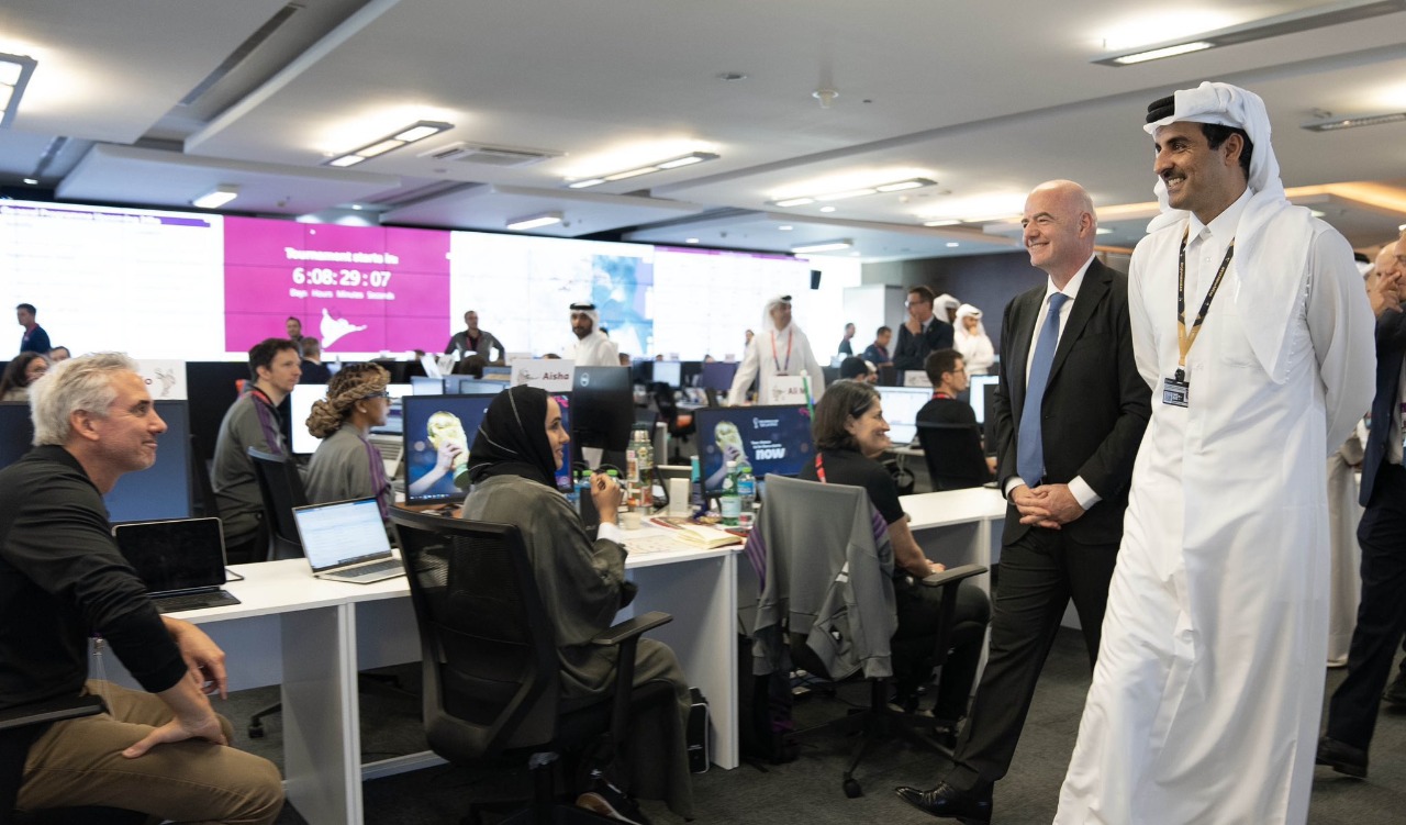 أمير قطر وإنفانتينو يزوران مركز قيادة المونديال