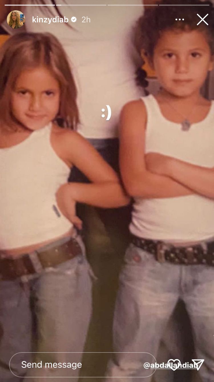 ونشرت كنزي صور تجمعها بشقيقها في الطفولة، ووجهت له رسالة، قالت فيها: سنة سعيدة على السوبر استار.