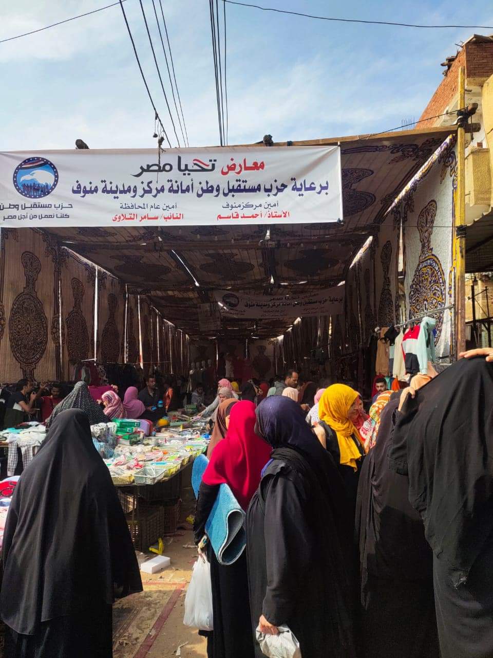 وفي محافظة المنوفية، واصلت أمانة مركز ومدينة منوف، إقامة معرضا لبيع جميع مستلزمات الأسرة المصرية بأسعار مخفضة، في قرية غمرين، وشمل المعرض من مفروشات وملابس العيد وأدوات منزلية وجهاز العرائس والمواد الغذائية والسلع الأساسية، لمواجهة جشع التجار واحتكار السلع، وشهد المعرض إقبال وإستحسان من جميع الأهالي نظرا لجوده المنتجات المعروضة وكذا انخفاض الأسعار وطلبوا تكرار عمل مثل هذه المعارض.