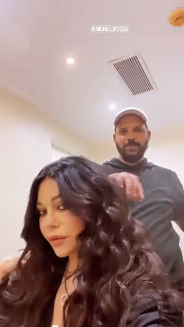 وظهرت هيفاء وهبي بتسريحة شعر ويفي، ونشرت بعض المقاطع من الصالون عبر خاصية ستوري بانستجرام.