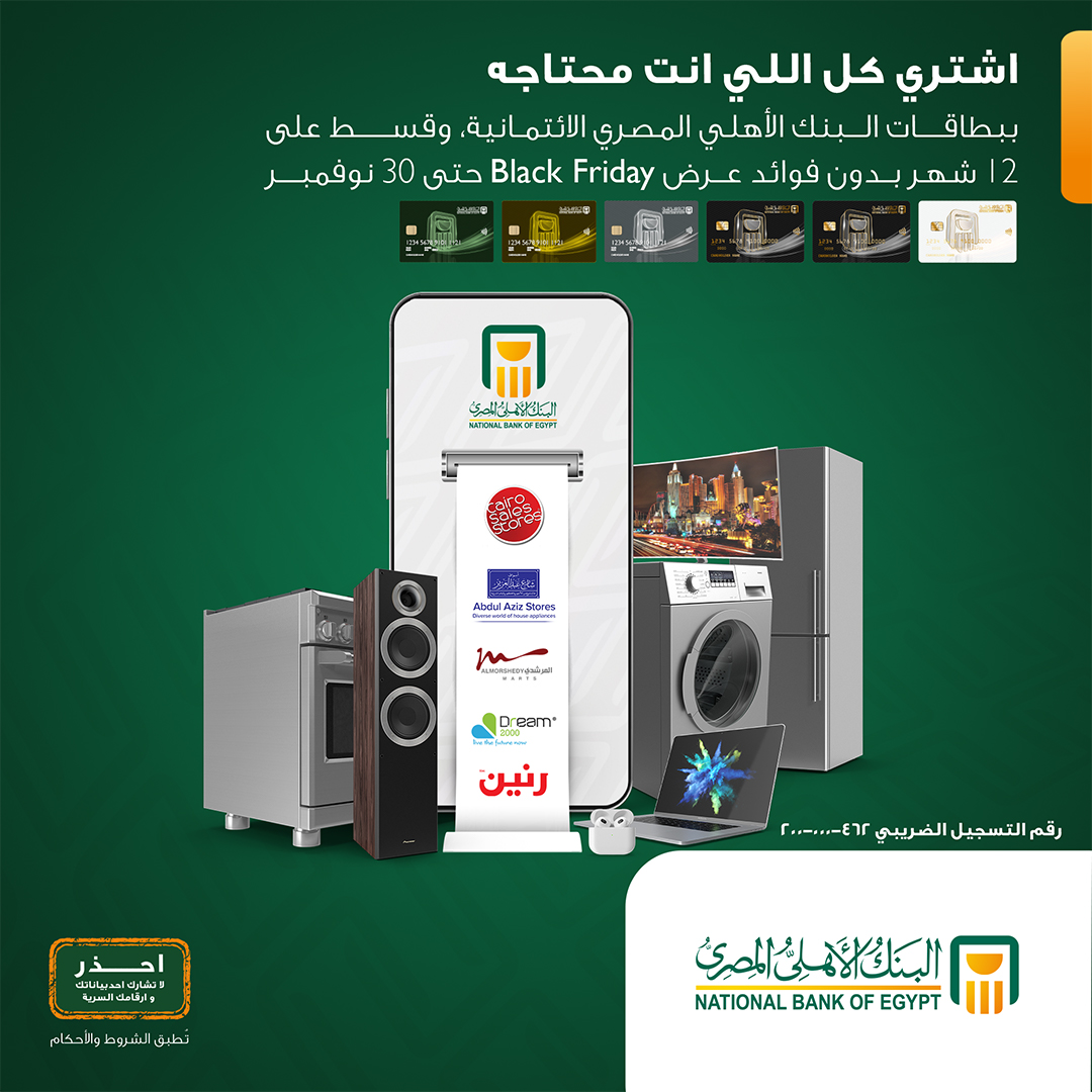 وأضاف: "التقسيط ساري علي بطاقات ائتمان البنك الأهلي المصري فقط".