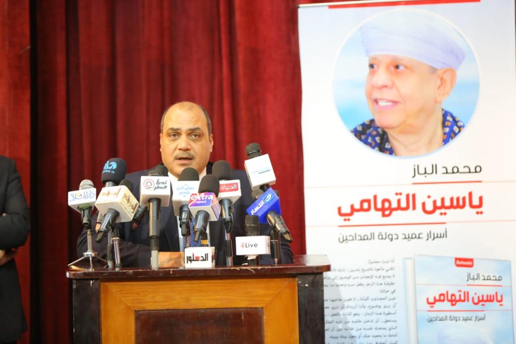شهد مسرح وزارة الشباب والرياضة حفل توقيع كتاب الدكتور محمد الباز رئيس مجلسى الإدارة والتحرير بجريدة الدستور بعنوان "ياسين التهامي.. أسرار عميد دولة المداحين"، الصادر عن دار "بتانه" للنشر والتوزيع، بحضور الدكتور أشرف صبحى وزير الشباب والرياضة والشيخ ياسين التهامى، وعدد كبير من محبى ومريدى عميد دولة المداحين.