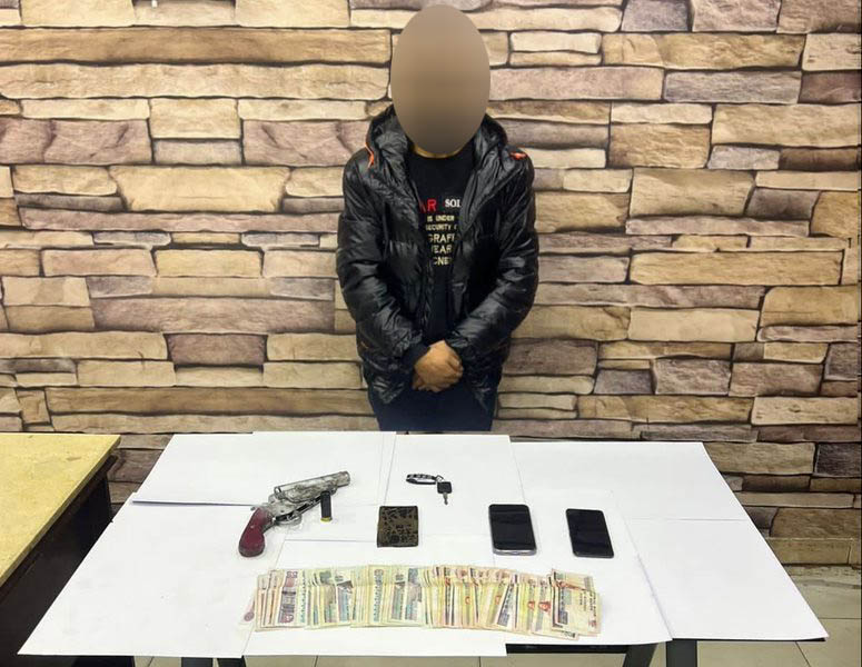(أحد الأشخاص- مقيم بدائرة القسم "له معلومات جنائية") حال إستقلاله سيارة.. وبحوزته (فرد خرطوش وطلقة من ذات العيار- كمية من مخدر الحشيش- مبلغ مالى).