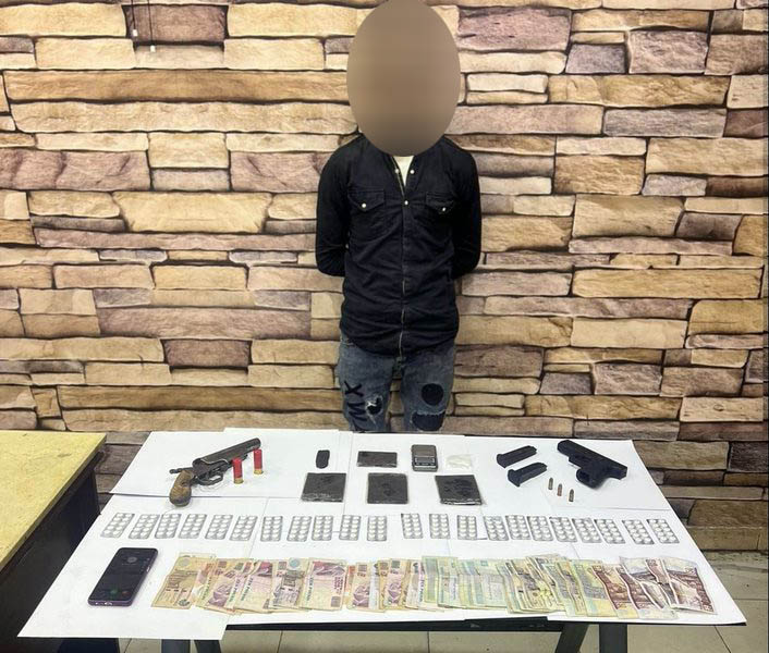 كما تمكنت وحدة مباحث قسم شرطة المرج بمديرية أمن القاهرة من ضبط كلٍ من أحد الأشخاص- مقيم بالقليوبية "له معلومات جنائية" وبحوزته طبنجة - فرد خرطوش - 2 خزينة وطلقتين ناريتين- كمية من مخدرى "الحشيش، الآيس"- كمية من أقراص مخدر "الترامادول"- ميزان حساس- مبلغ مالى - هاتف محمول.
