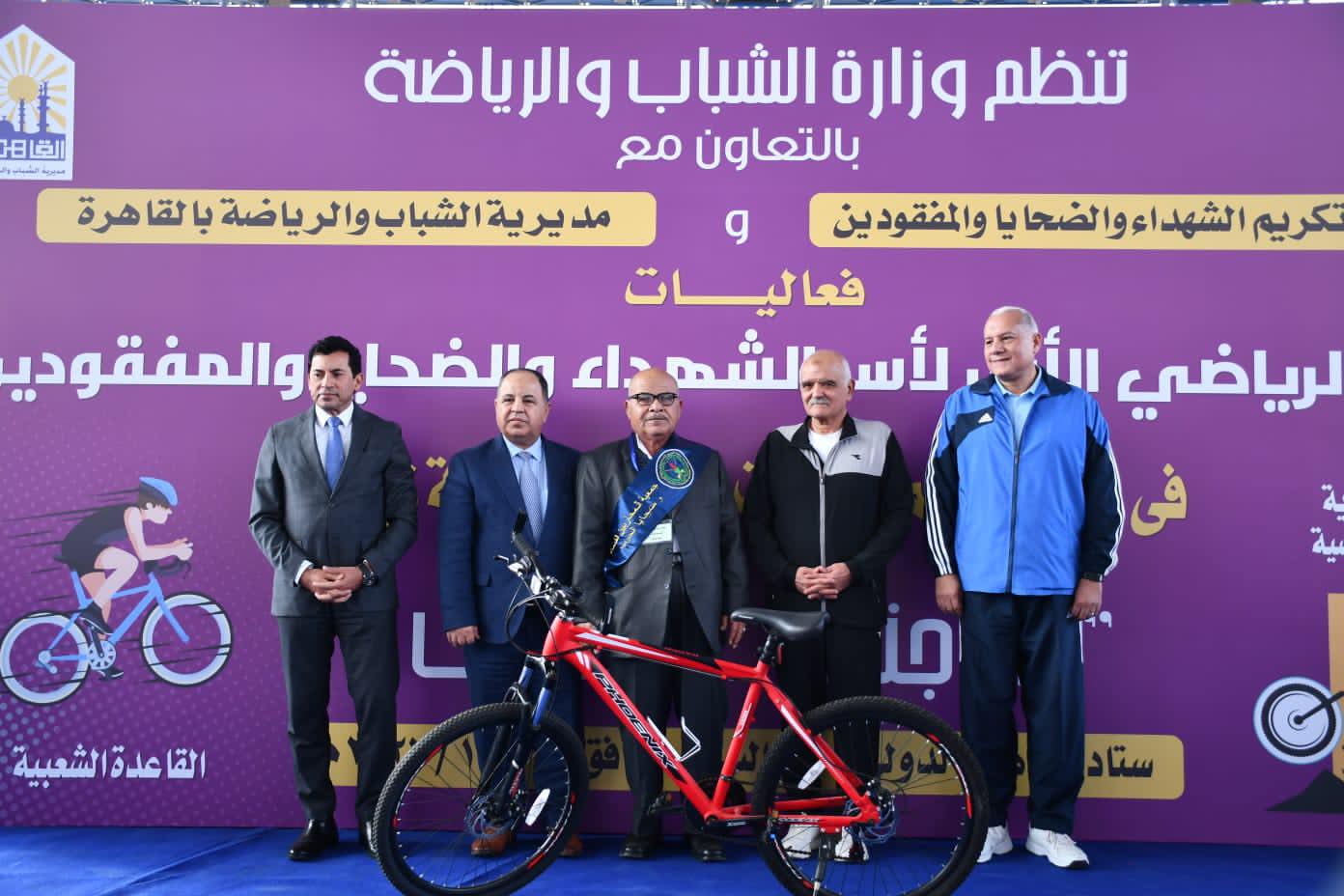 وقام وزير الشباب والرياضة ووزير المالية ورئيس صندوق تكريم الشهداء والضحايا والمفقودين بتسليم مجموعة من الدراجات الهوائية على أسر الشهداء والضحايا والمفقودين ضمن المرحلة الثانية من مبادرة "دراجتك صحتك"، التى تتبناها وزارة الشباب والرياضة حيث يتم تسليم 500 أسرة من أسر الشهداء والضحايا للدراجات الهوائية.