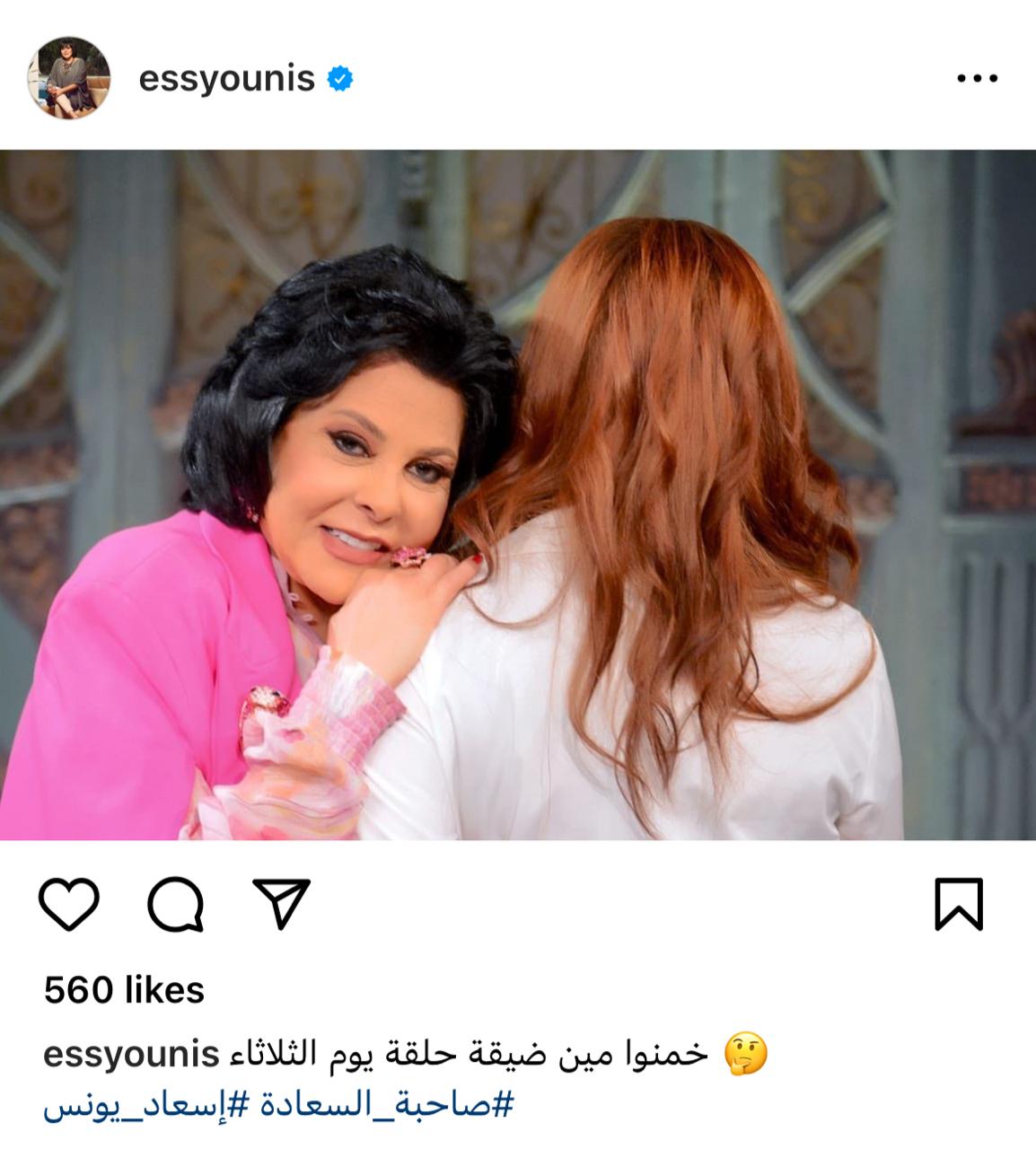 شوقت الفنانة إسعاد يونس جمهورها لحلقة الثلاثاء القادم من برنامجها صاحبة السعادة، وذلك عبر حسابها الرسمي بموقع تبادل الصور والفيديوهات الشهير انستجرام.