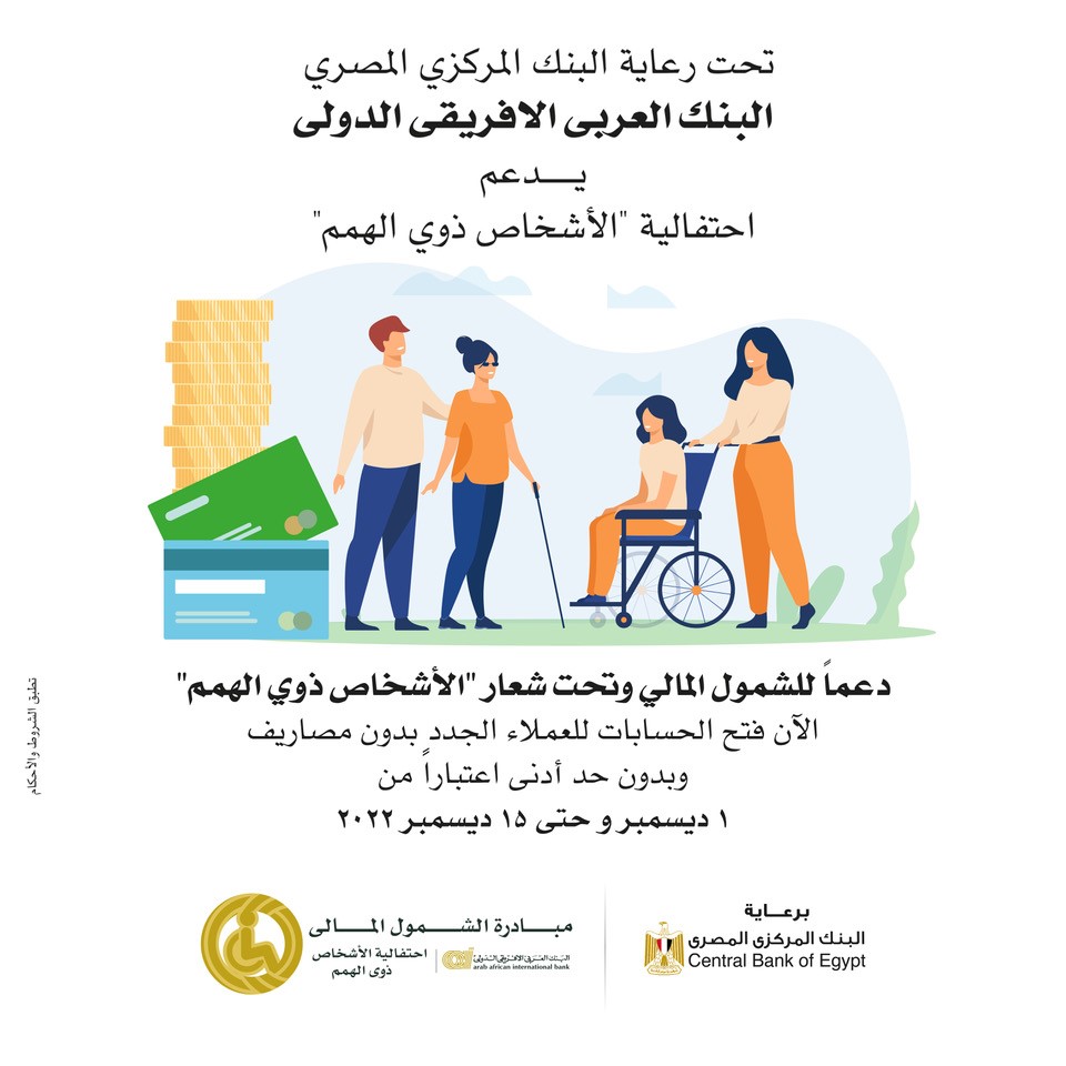 ونشر البنك العربى الافريقى عبر صفحته الرسمية على موقع "فيسبوك"،"دعماً للشمول المالي وتحت شعار "احتفالية الأشخاص ذوي الهمم"، الآن فتح الحسابات للعملاء الجدد بدون مصاريف إدارية وبدون حد أدنى اعتبارًا من 1 ديسمبر 2022 وحتى 15 ديسمبر 2022".