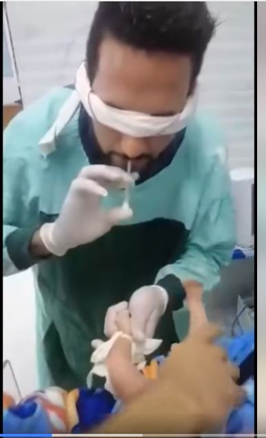 ممرض يراهن على حياة رضيع بتركيب كانيولا في وريده أثناء وضع غطاء على عينيه .. فيديو