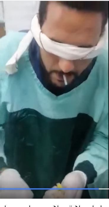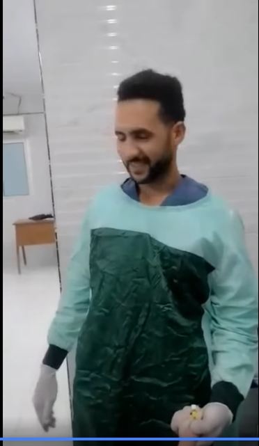 حيث ظهر فى مقطع الفيديو الممرض وهو واضع غطاء على عينيه ويحاول تركيب كانيولا للرضيع وهو معصوب العينين فى تحدى مع زملاءه دون النظر إلى حياة الطفل وخطر ذلك عليه .
