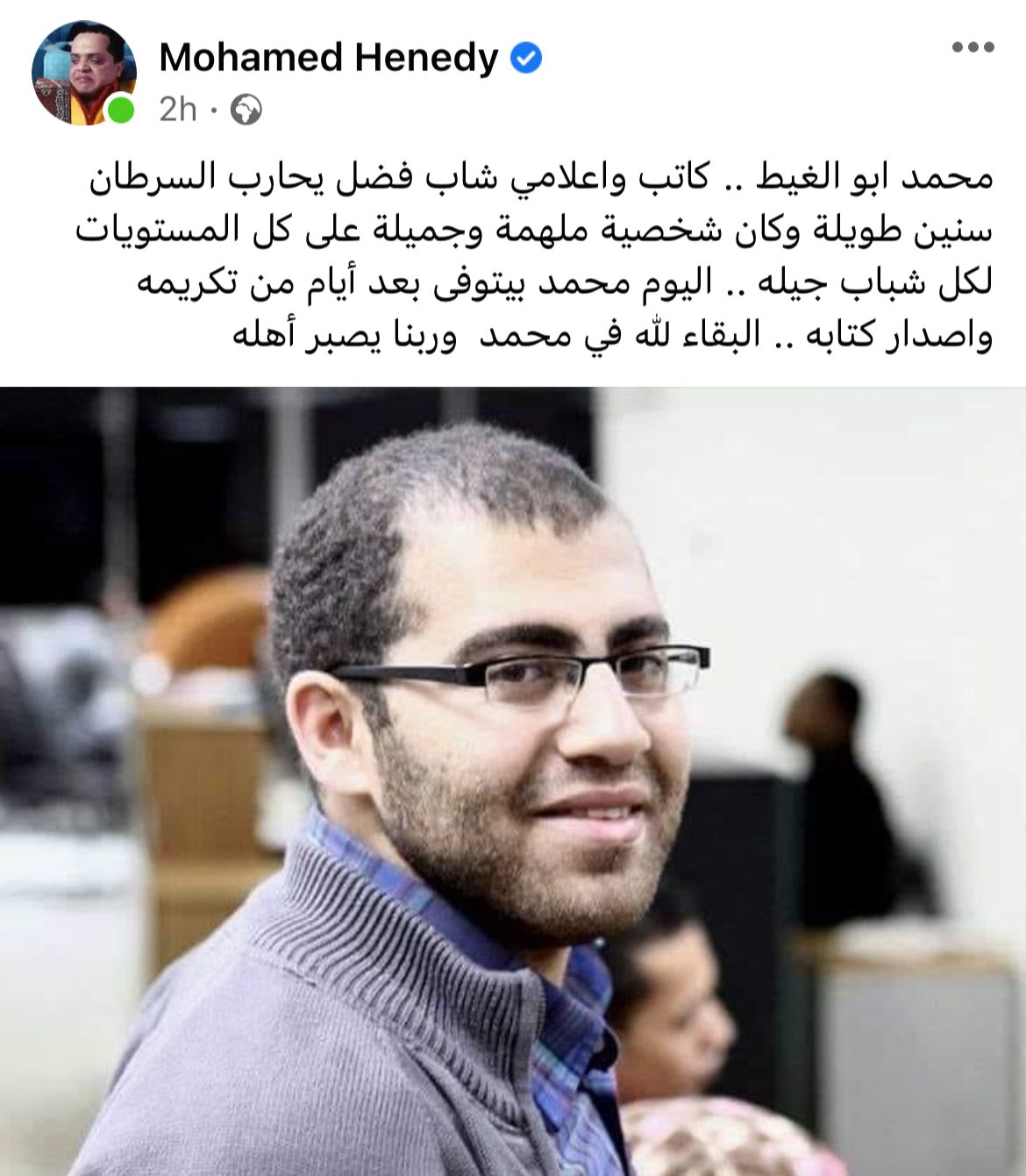 وكتب محمد هنيدي عبر فيسبوك: محمد أبو الغيط.. كاتب واعلامي شاب فضل يحارب السرطان سنين طويلة، وكان شخصية ملهمة وجميلة على كل المستويات لكل شباب جيله..