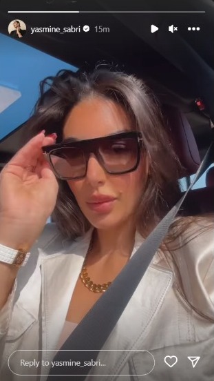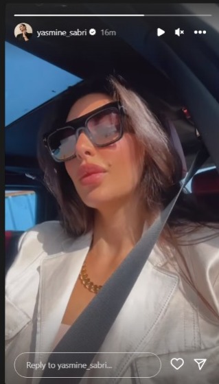 ونشرت ياسمين صبري فيديو عبر خاصية ستوري لها من السيارة، بشعر منسدل وهي ترتدي نظارة شمسية، مما نال إعجاب متابعيها.