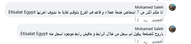 وقال عميل اتصالات مصر في الشكوى على موقع "فيسبوك"،: "بأروح للصفحة بيقول لي سجل من خلال الرابط و مافيش رابط موجود أسجل منه".