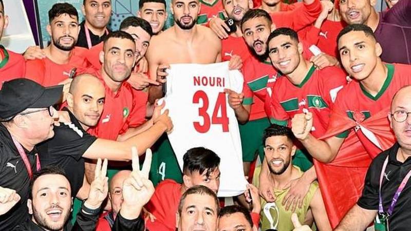 لاعبو المغرب لم يكتفوا فقط بالاحتفال مع أسرهم، بل تذكروا ذلك الراقد بلا هوادة في المستشفى غير واعٍ بما يدور حوله، وهو زميلهم السابق بالمنتخب عبد الحق نوري، الذي ربما لو كان يلعب لكان ضمن كتيبة الركراكي،و كان سيشهد على هذا الانتصار التاريخي، ولكن الأقدار لعبت معه، وأبعدته عن الملاعب بعد تأثره بشلل دماغي جعلته حبيس فراشه منذ أكثر من 5 سنوات، ولكن في لحظات الانتصار لم يغيب الوفاء عن لاعبي الأسود، الذين رفعوا فانلة نوري، مهدين له هذا الانتصار الذي جاء بعد ملحمة تاريخية.