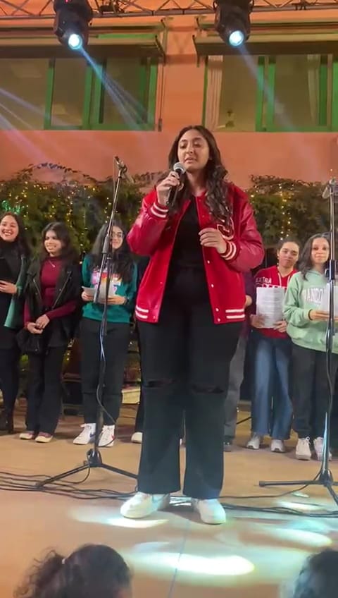 نجلة ياسر جلال تفاجئ حضور حفل مدرستها بصوتها الجميل