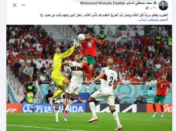 وقال النائب أحمد بلال، عضو مجلس النواب:" القضية ليست مباراة كرة قدم.. القضية أن هناك تجربة ملهمة: حلم بلا حدود وقائد زرع في فريقه ثقة أنهم ليسوا أقل من أكبر الكبار وأن التمثيل المشرف لا يناسبهم وأنهم لا يستهدفون إلا النصر. وباقي ع النصر خطوة. مبروك لشعب المغرب الشقيق.. فرحتونا وان شاء الله تكتمل فرحتنا بالتتويج"، فيما قال النائب محمود عصام عضو مجلس النواب:" كنت هناك وحضرت التاريخ يكتب بالعربية وشاهدت لأول مرة منتخب عربى وأفريقى يصعد إلى نصف نهائى كأس العالم.. مبروووك لكل العرب وبإذن الله كأس العالم عربية من داخل أرض عربية".