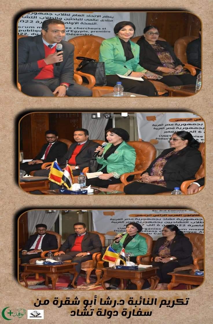 وأشارت النائبة في المنشور، إلى أنها شاركت بالجلسة الثالثة بالمنتدي العالمي للباحثين والطلاب التشاديين، وكانت الجلسة بعنوان " أفريقيا التي نريدها من رؤية الشباب الافريقي ".