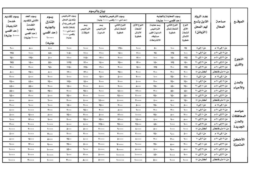 وفيما يلي ننشر رسوم تقديم الشيشة :النرجيلة" كما هي موضحة بآخر عمود بالجدول التالي: