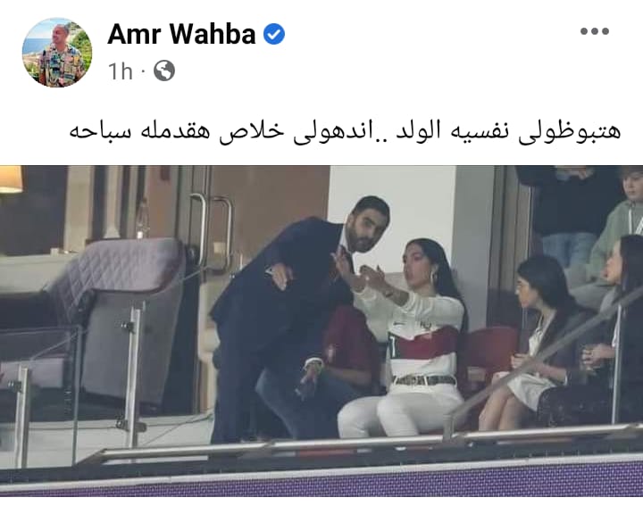 شارك عمرو وهبة صورة لـ جورجينا زوجة كريستيانو رونالدو عبر حسابه الرسمي بموقع التواصل الإجتماعي “فيسبوك”، وعلق عليها وكأنه يتحدث على لسان جورجينا: هتبوظولى نفسيه الولد ..اندهولى خلاص هقدمله سباحة.