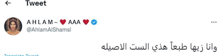 وعلقت أحلام على منشور فيه تصريحات حنان شوقي والتي قالت فيها: "قبل ما أنام لازم أبوس إيد جوزي وأقوله تامرني بإيه" وكتبت عبر حسابها على موقع التدوينات القصيرة تويتر: وأنا زيها طبعا هذي الست الأصيلة.
