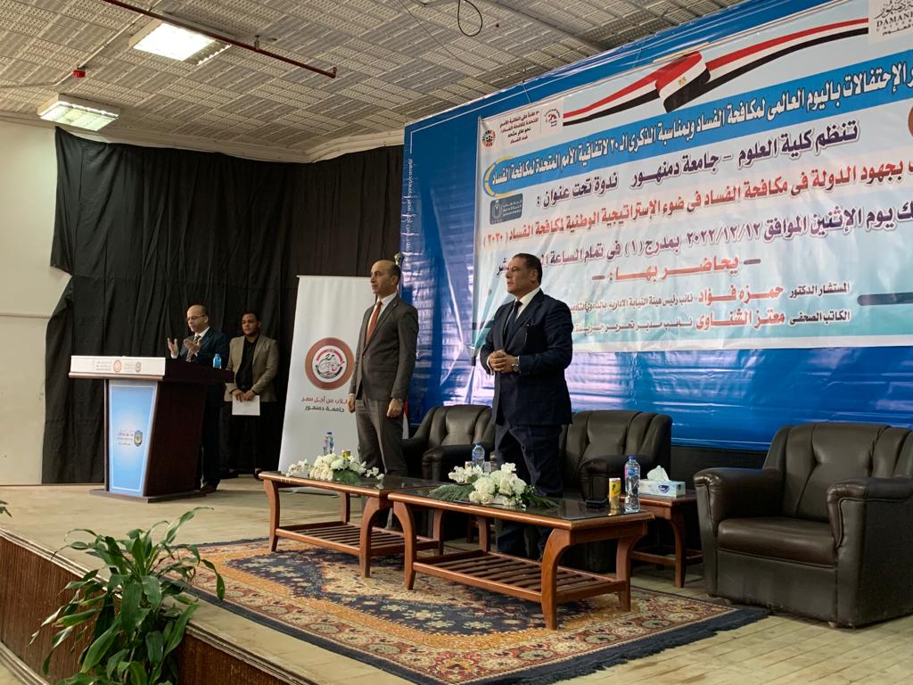 نظمت كلية العلوم جامعة دمنهور، ندوة تحت عنوان " التعريف بجهود الدولة فى مكافحة الفساد فى ضوء الاستراتيجية الوطنية لمكافحة الفساد ( 2030 )"، فى إطار الاحتفالات باليوم العالمي لمكافحة الفساد وبمناسبة الذكرى ال 20 لاتفاقية الأمم المتحدة لمكافحة الفساد.