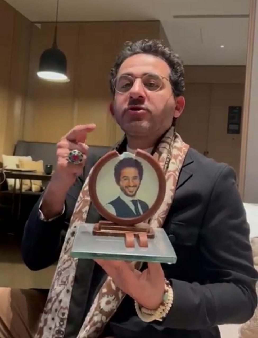 وقال تركي ال الشيخ في الفيديو: “ أنا اليوم مع النجم العربي اللي أنا فخور بيه وسعيد بشوفته اليوم، أحمد حلمي، هو أساسًا مش غريب على البلد هو مواليد السعودية وعايش فترة في السعودية، وأحمد كسبناه في مسرحية هتشوفوها عالمية وأشياء كثيرة عالمية”.