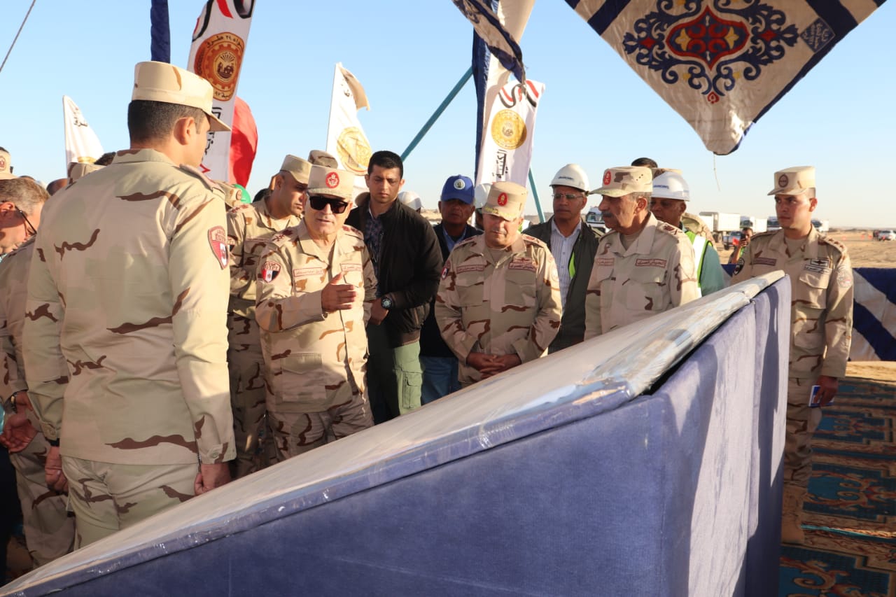 وإستمع رئيس أركان حرب القوات المسلحة إلى شرح تفصيلى تضمن أحدث ما وصل إليه المشروع وفقاً لمعدلات الأداء والخطط الزمنية للمشروع لتحقيق النتائج المرجوة من تلك الرقعة الزراعية المضافة لمساحة مصر الزراعية .