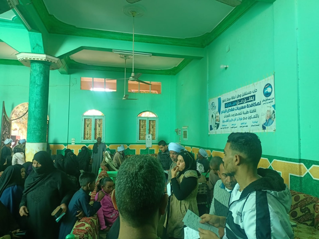 نظمت أمانة الحزب بالمحافظة، قافلة طبية لمرضى العيون بالتنسيق مع مستشفى المغربى للعيون بحضور نخبة من أفضل الأطباء المتخصصين فى أمراض العيون، وشهدت القافلة الطبية إقبالا كبيرا، وتستهدف القافلة إجراء عمليات المياه البيضاء مجانا فى مستشفى المغربى بالقاهرة وإعفاء أهالينا من أي مصروفات بالإضافة إلى عمل نظارات مجانا وتحويل حالات أخرى لعمل فحوصات بالمستشفي، وقدمت القافلة الطبية الكشف علي 124 حالة.
