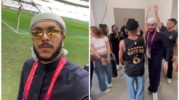بالجلابية.. أول ظهور لـ ويجز داخل الاستاد قبل حفل ختام كأس العالم 2022