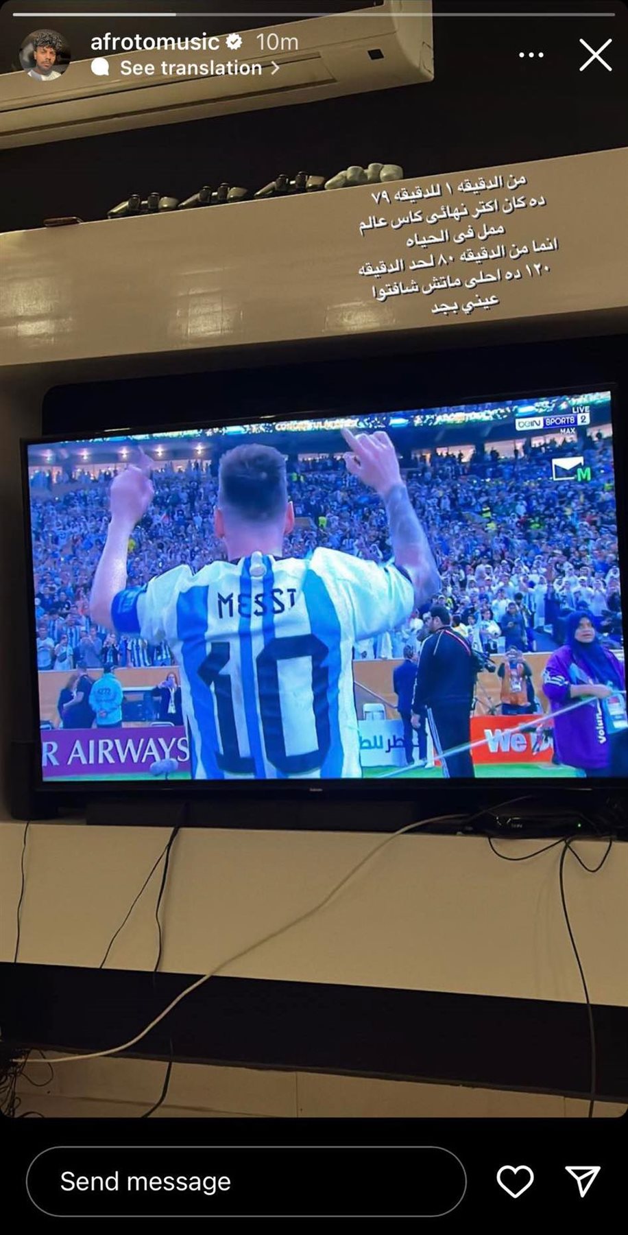 علق مغني الراب عفرتو على مباراة ختام كأس العالم، التي انتهت قبل قليل بفوز الأرجنتين، وذلك عبر خاصية ستوري بانستجرام.