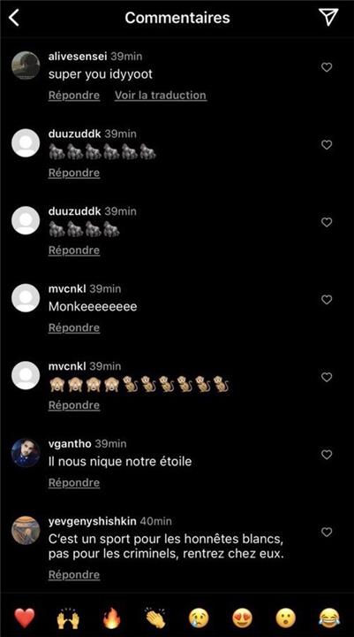 قام ثنائي المنتخب الفرنسي ،أورلين تشواميني، وكولو مواني بعمل حظر للتعليقات، علي حسابيهما علي موقع التواصل الاجتماعي الانستجرام، بعد العبارات العنصرية التي تعرض لها الثنائي، عبر مواقع التواصل عقب خسارة منتخب الديوك الفرنسية للقب بطولة كأس العالم، مساء أمس الأحد أمام منتخب الأرجنتين بضربات الترجيح ،علي ملعب استاد لوسيل بدولة قطر.