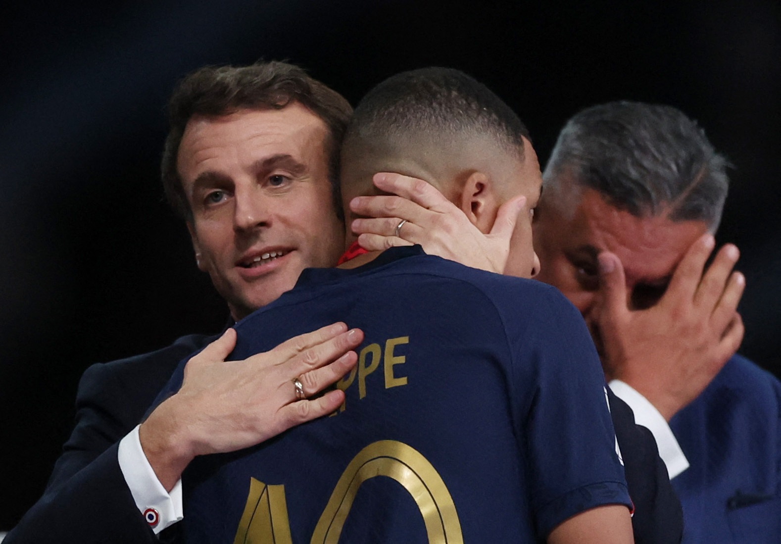 وعلى الرغم من هزيمة الديوك بركلات الترجيح، إلا أن ماكرون كان متواجدًا في أرضية الملعب من أجل مواساة اللاعبين ومساندتهم بعد الهزيمة من منتخب الأرجنتين، وخاصة كيليان مبابي الذي كان متأثًرا بشكل كبير.
