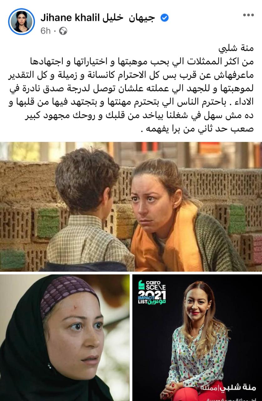 تحيا مصر يرصد لكم منشور جيهان خليل عن منة شلبي