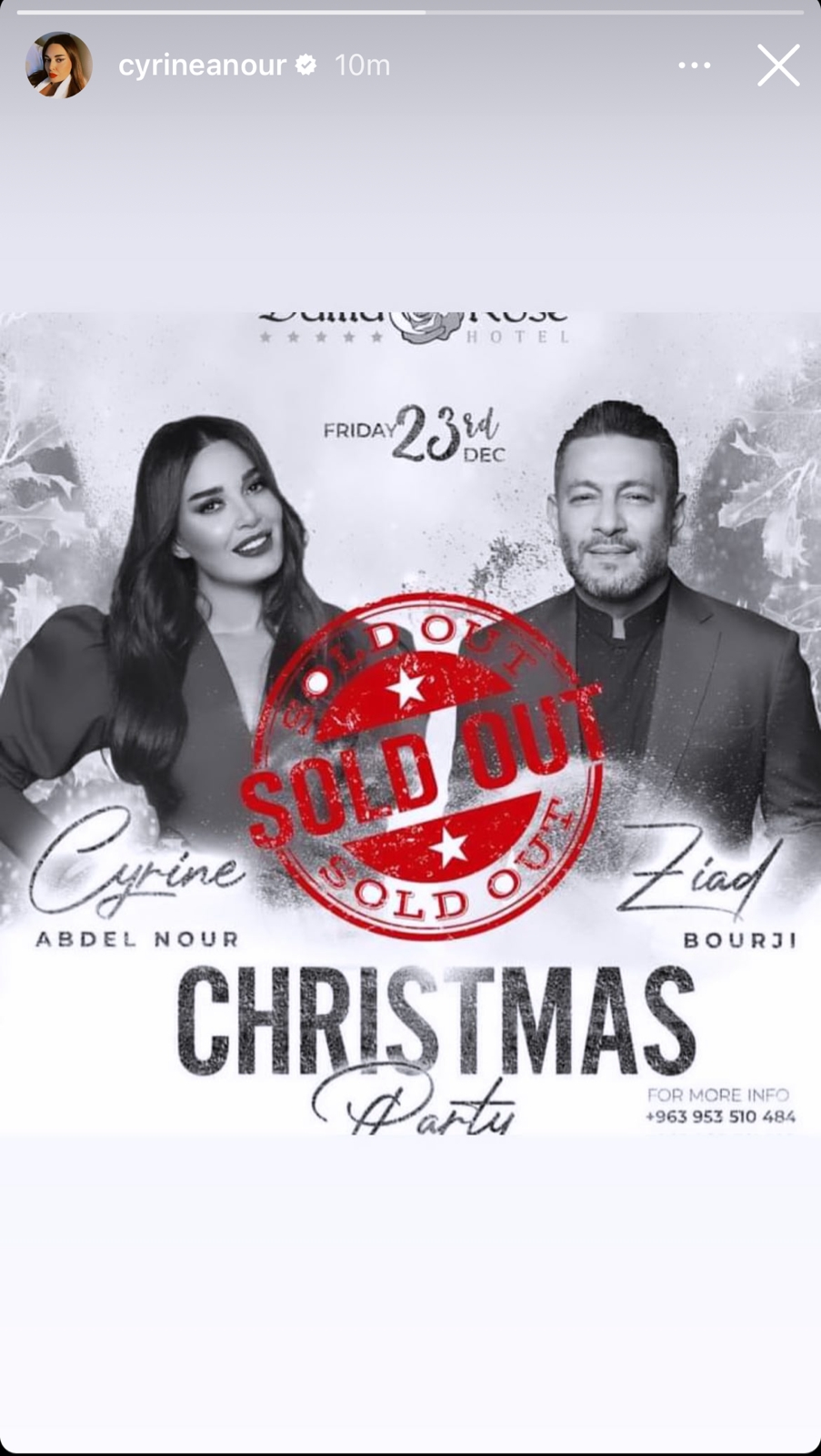 يستعد كلًا من المطربة سيرين عبد النور، والمطرب زياد برجي لإحياء حفلًا غنائيًا اليوم بمناسبة الكريسماس، ومن المتوقع أن يكون تحت شعار كامل العدد.